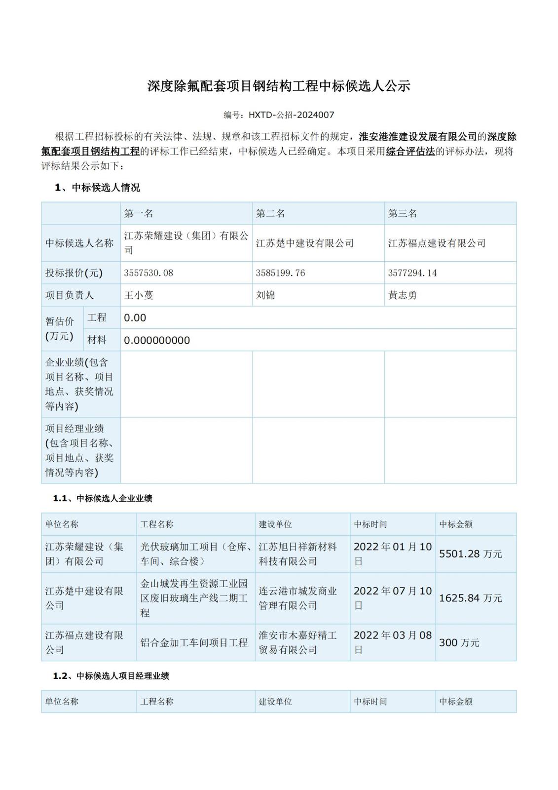 深度除氟配套項(xiàng)目鋼結(jié)構(gòu)工程中標(biāo)候選人公示